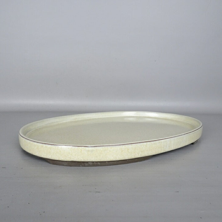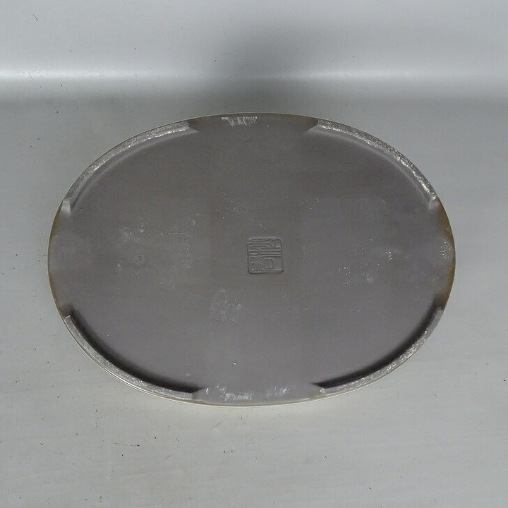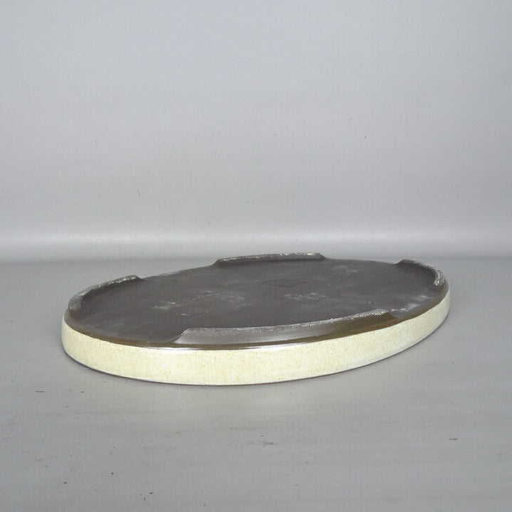 水盤 春松 中型 長辺 約 31.5cm 楕円 鉢 水石 盆栽 花器 釉薬 現品 中古 品名水盤 (春松)...