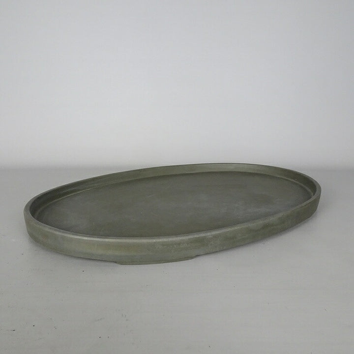【中古】 水盤 水庄園 中型 長辺 約 45.9cm 楕円 鉢 水石 盆栽 花器 現品 中古 品名水盤 (水庄園)...