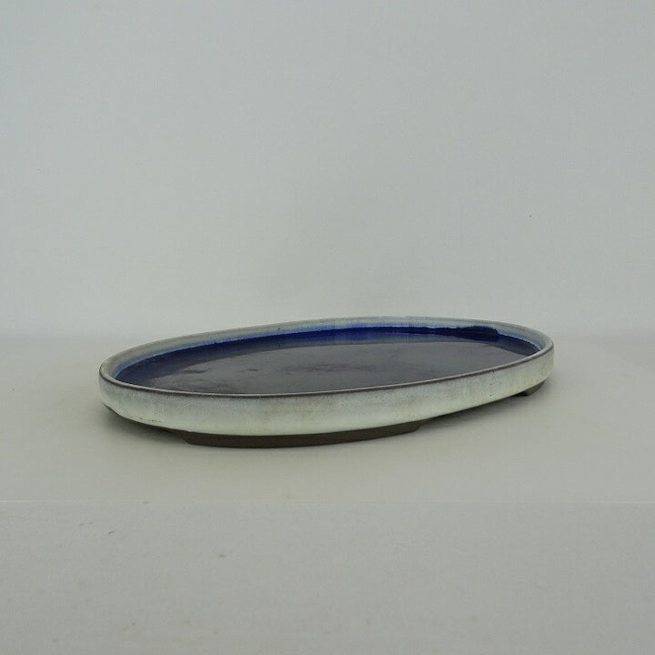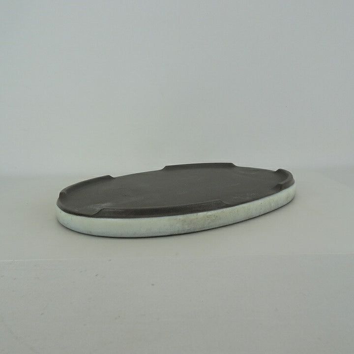 水盤 萬古 落款なし 中型 長辺 約 31.5cm 楕円 鉢 水石 盆栽 花器 現品 中古 品名水盤...