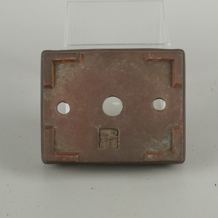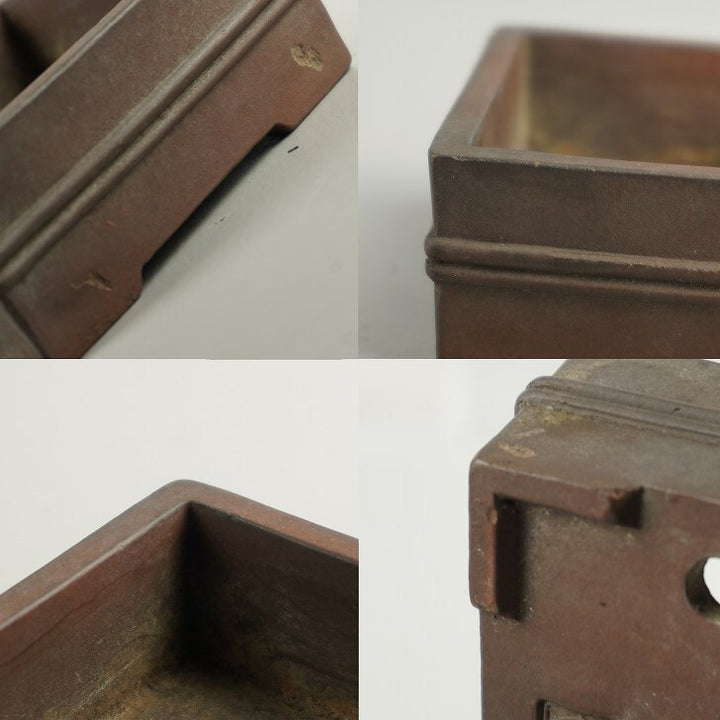 中古 盆栽鉢 常滑 千交苑 小鉢 長辺 約 8.2cm 長方鉢 中帯 泥物 中古鉢 j1203134322