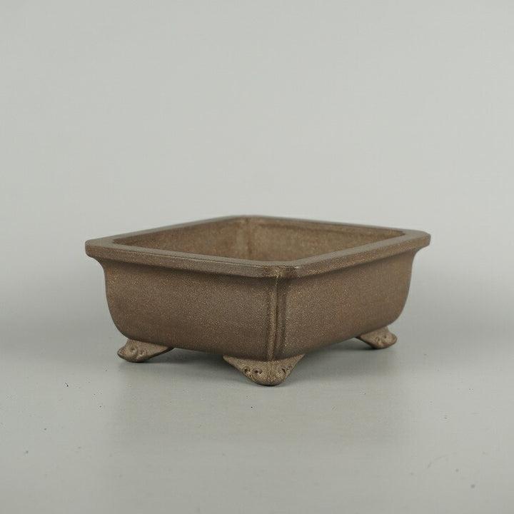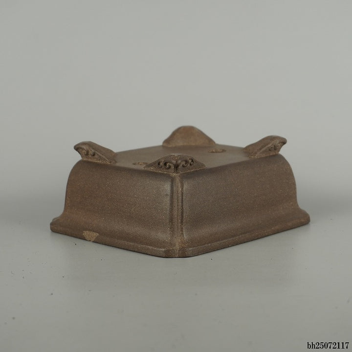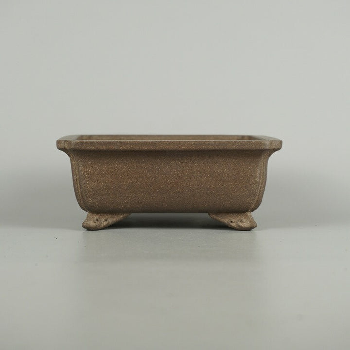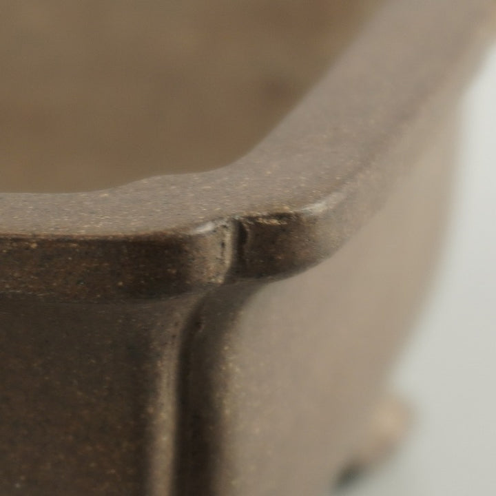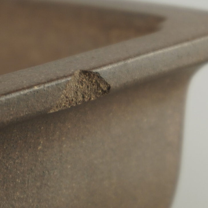 盆栽鉢 常滑 壱興造記 小型 長辺 約 15.7cm 長方鉢 外縁 隅入 雲足 泥物 現品 中古鉢 本名:渡辺一弘 父、渡辺正山のもとで修業しながら釉薬を研究し、昭和53年頃から小品樹鉢焼成をはじめる。 タタラづくり主体の釉色樹鉢や釉色水盤、釉色は、織部、均釉、白交趾、黄交趾、瑠璃釉などが主でその中間色もあり多彩である。泥色、小品、大物の盆器を鉢・水盤ともつくる常滑の盆器作家。 作家名は「かずひろ」と読みますが、一般的に「いっこう」と訓読みされて...