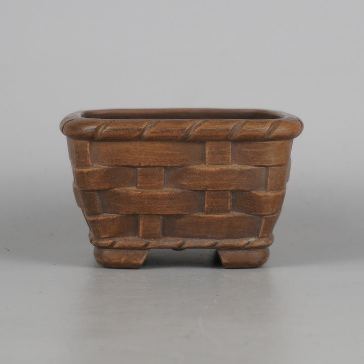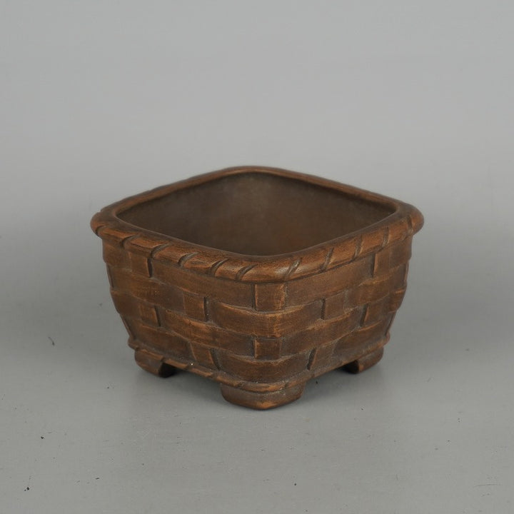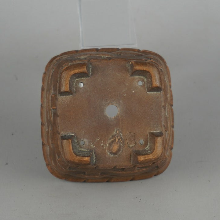 盆栽鉢 常滑 大山 小鉢 長辺 約 9.3cm 正方鉢 縁付 籠網 ナス 泥鉢 観賞用 現品 中古鉢 品名大山...