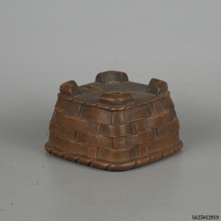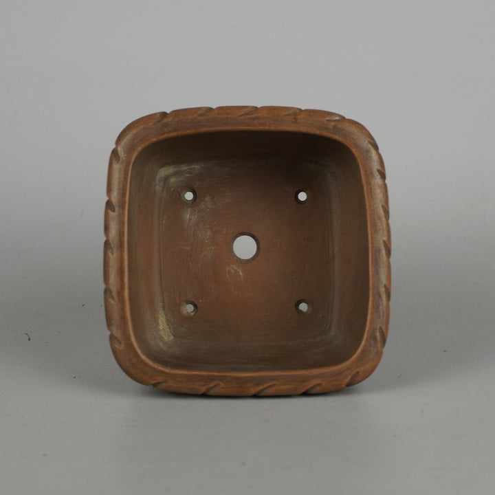 中古 盆栽鉢 常滑 大山 小鉢 長辺 約 9.3cm 正方鉢 縁付 籠網 ナス 泥鉢 観賞用 中古鉢 h1198423577