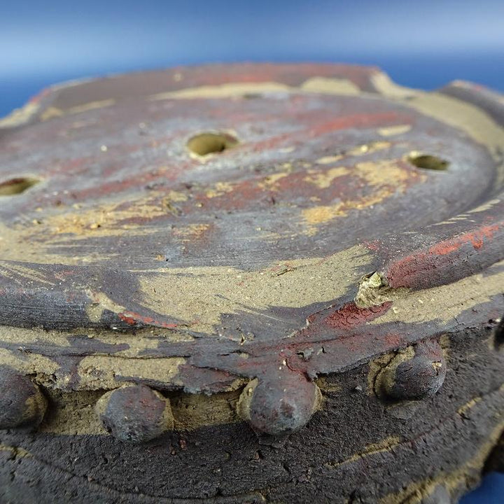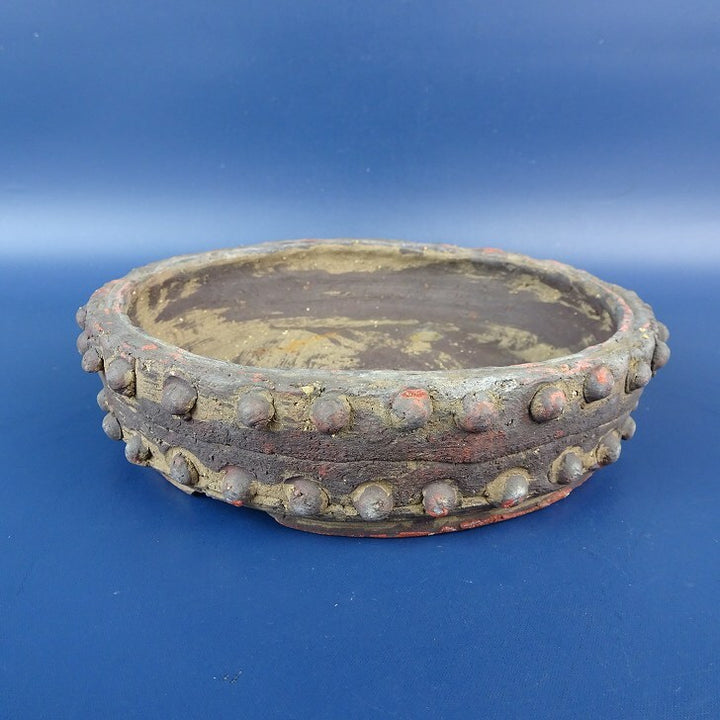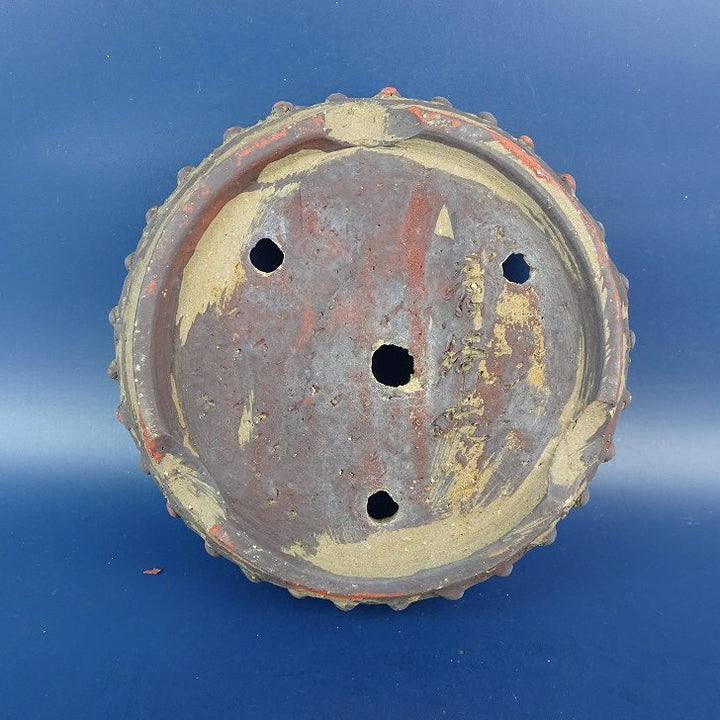 中古 盆栽鉢 常滑 秀峰造 小型 長辺 約15.5cm 丸鉢 鋲打 泥物 中古鉢 f1198405049