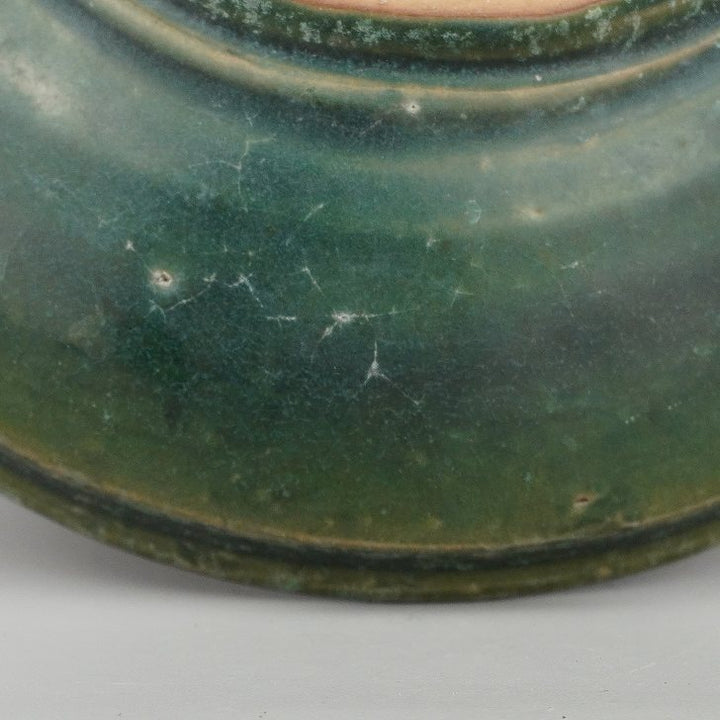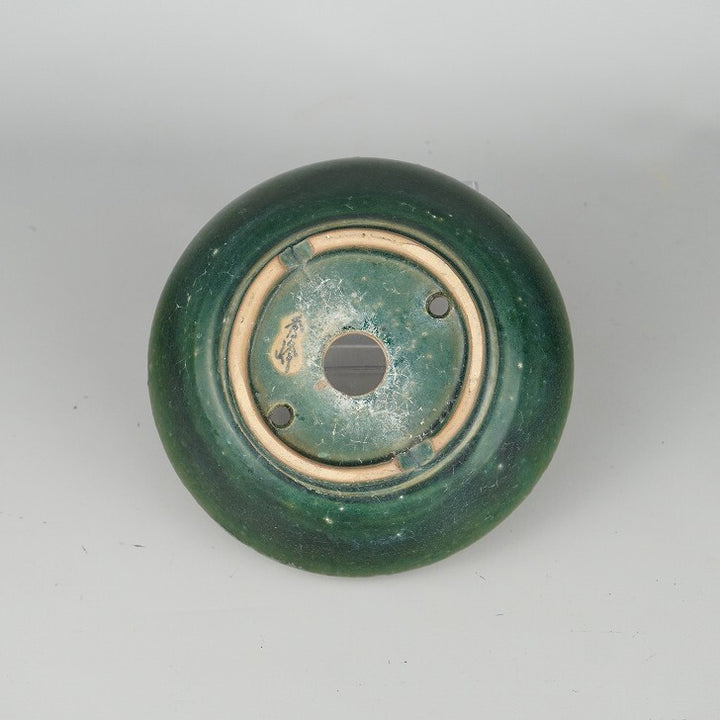 盆栽鉢 秀峰 小型 長辺 約14cm 丸鉢 緑釉 釉薬 現品 中古鉢 秀峰 大正12年創業の片岡陶園四代目、片岡晋が昭和48年義村陶園と改名する。翌49年に秀峰号を継承される。 陶法は、紐づくり、押型と多彩で、すっきりとした器型にどこか味わいのある形の特徴がある。釉色物も専門でこなれた釉の使い方には独自の工夫がうかがわれる。...