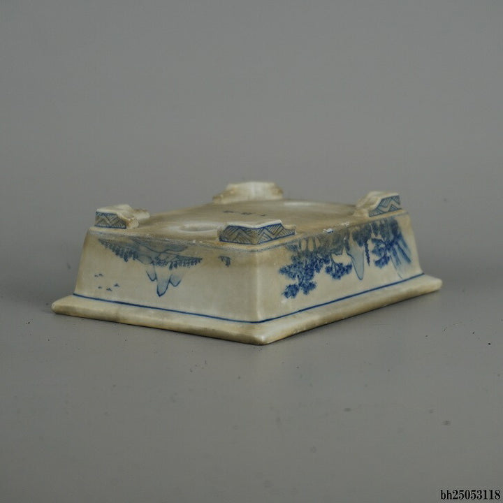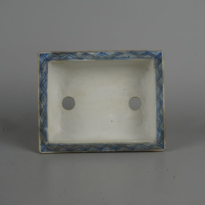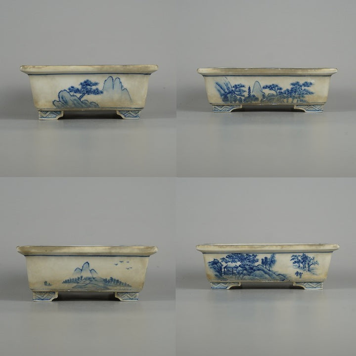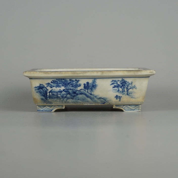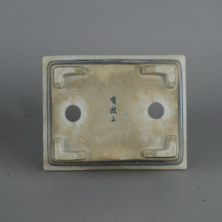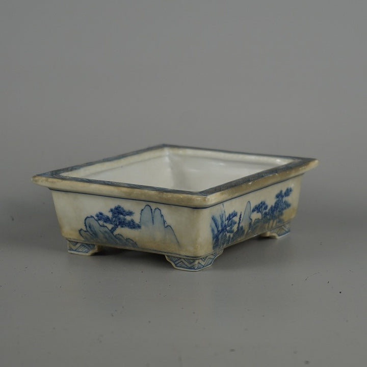 中古 盆栽鉢 有度山 小型 長辺 約 13.4cm 長方鉢 外縁 山水図 観賞用 中古鉢 k1198408625