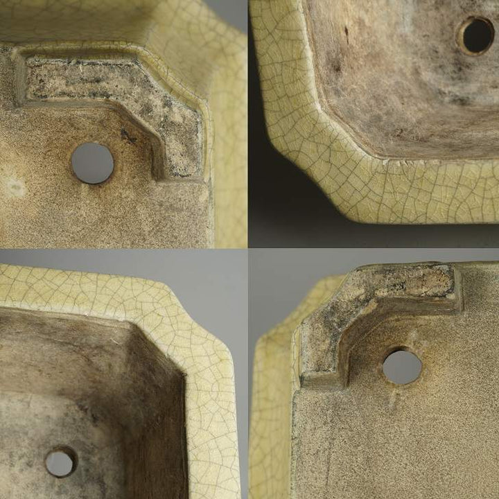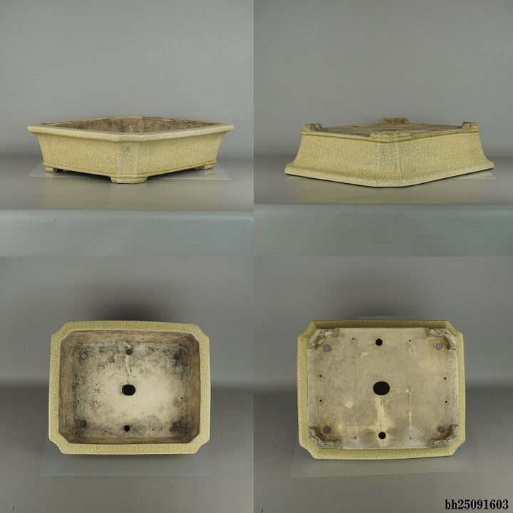 中古 盆栽鉢 真山作 寺畑 大型 長辺 約 52cm 長方鉢 外縁 隅切 下帯 貫入 釉薬 中古鉢 o1203474304