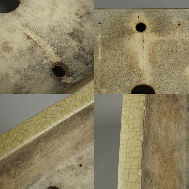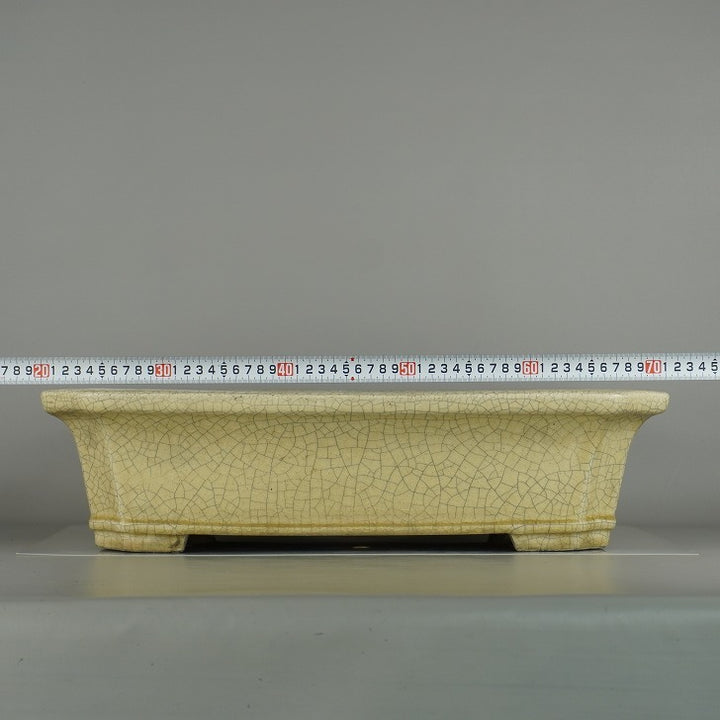 盆栽鉢 真山作 寺畑 大型 長辺 約 52cm 長方鉢 外縁 隅切 貫入 釉薬 現品 中古鉢 品名真山 サイズ高さ 約 13.5センチ...