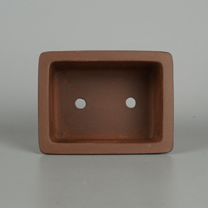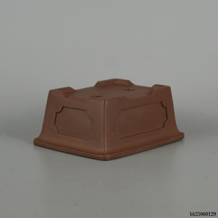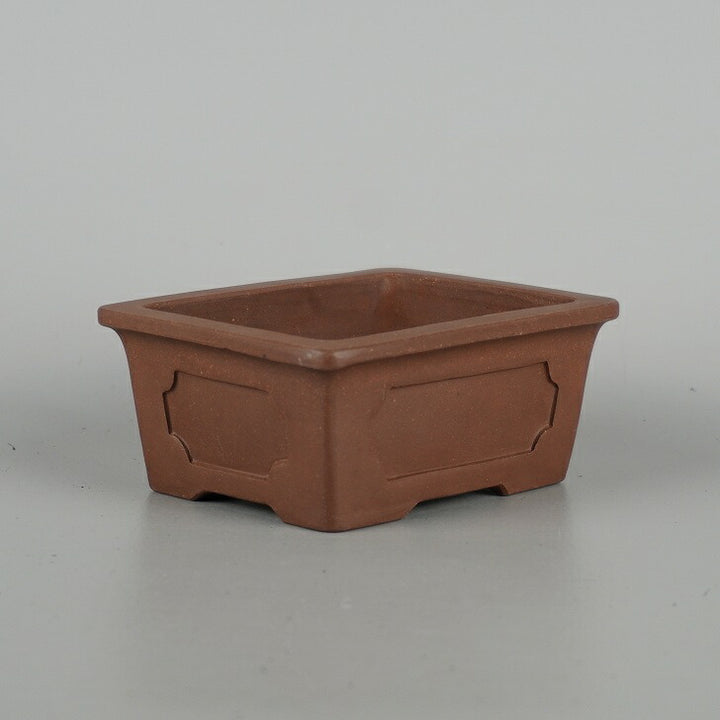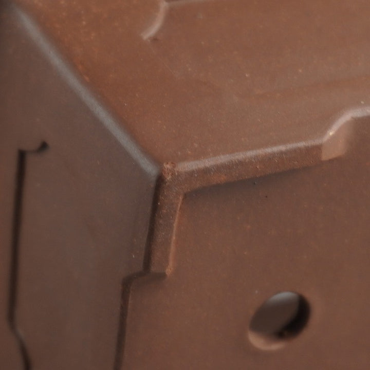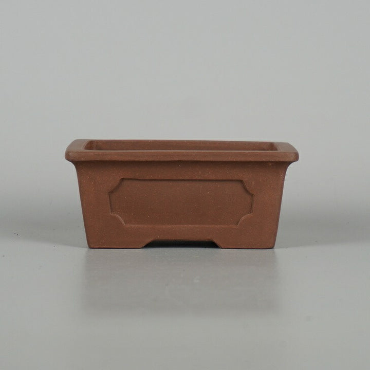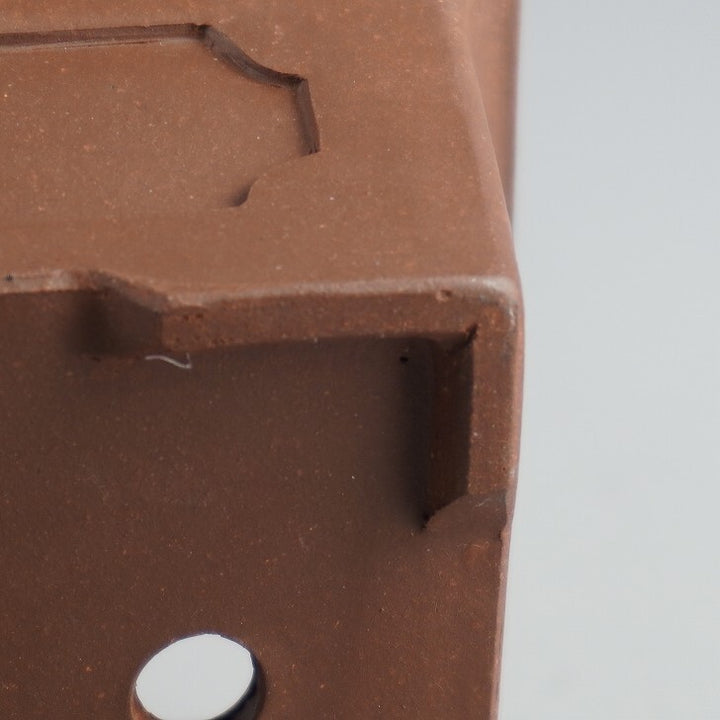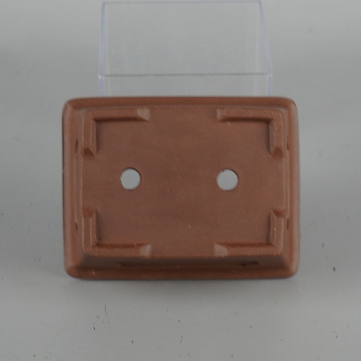 盆栽鉢 落款なし 小型 長辺 約 10.8cm 長方鉢 外縁 窓入 泥物 現品 中古鉢 品名落款なし...