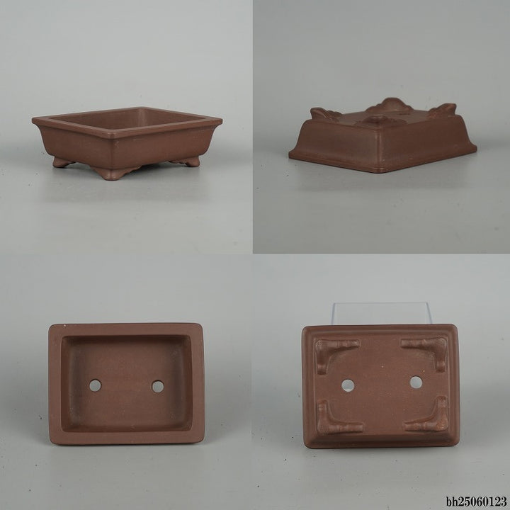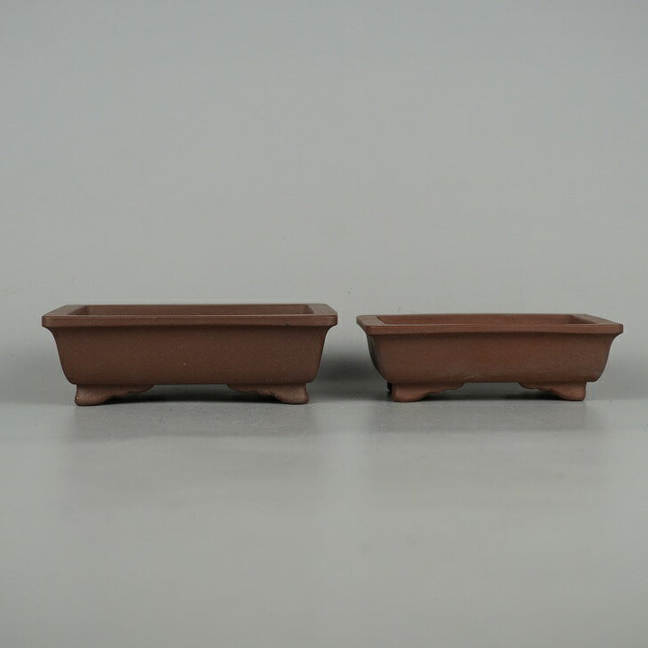 盆栽鉢 落款なし 2点セット 小型 長辺 約 11.8cm 長方鉢 外縁 泥物 現品 中古鉢 品名落款なし 2点セット...