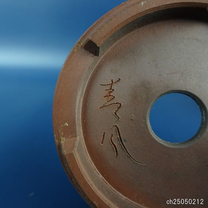 中古 盆栽鉢 青風 小鉢 長辺 約 9cm 丸鉢 下帯 泥鉢 中古鉢 k1198410369