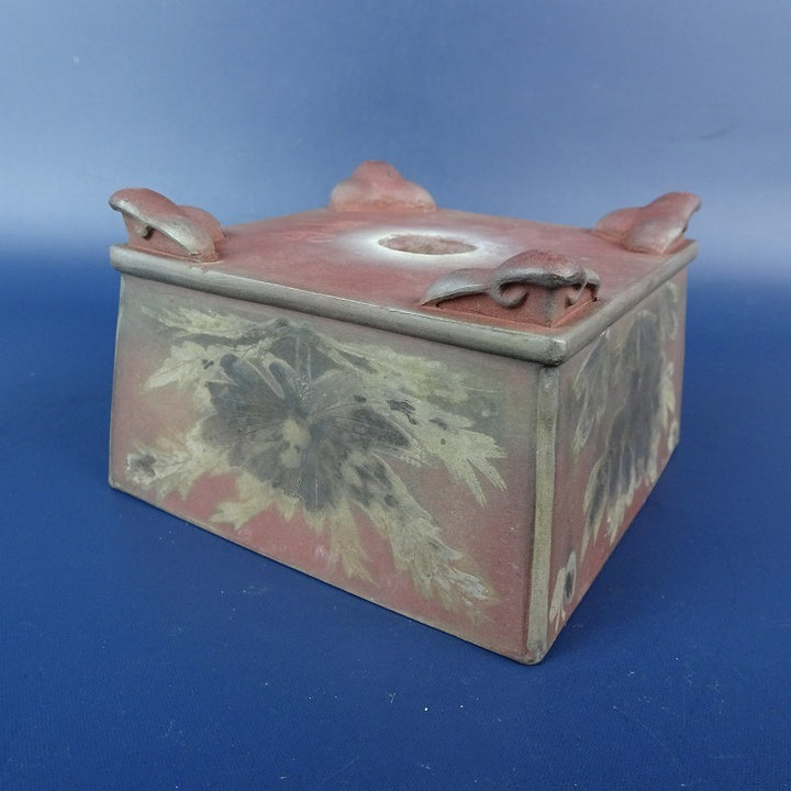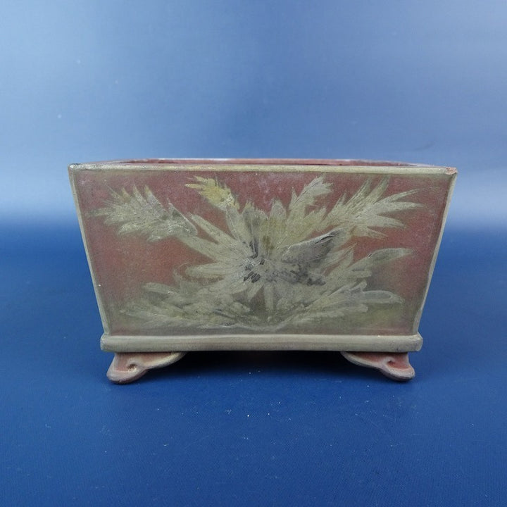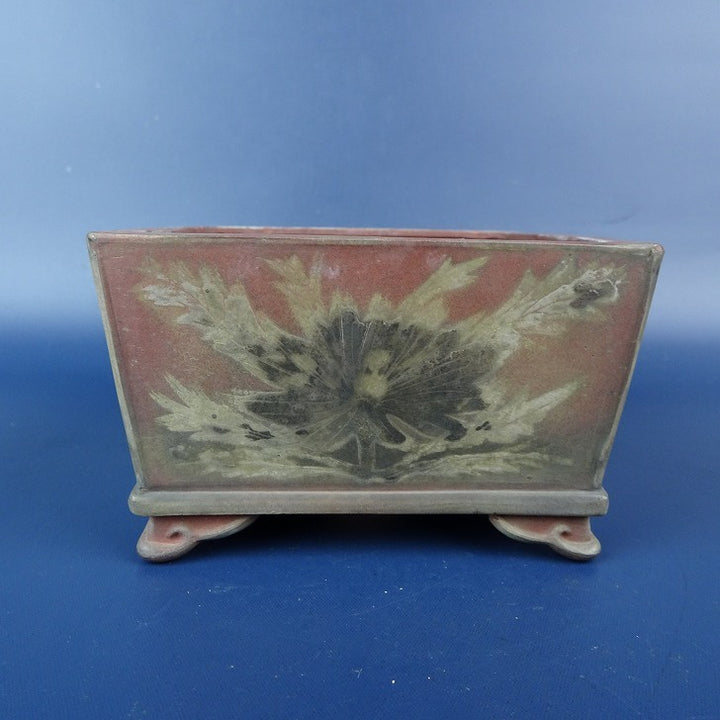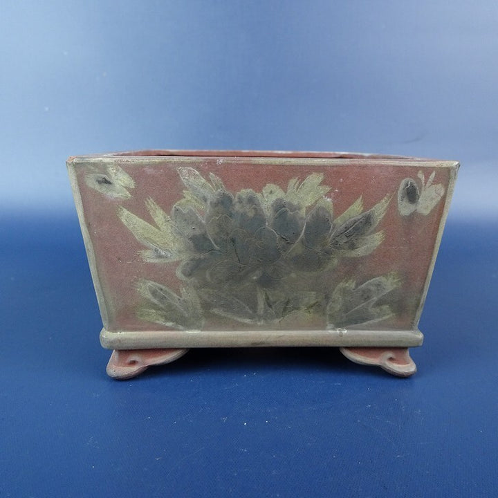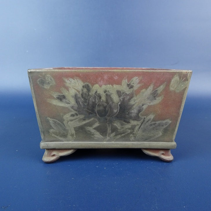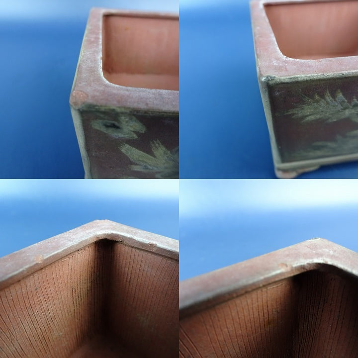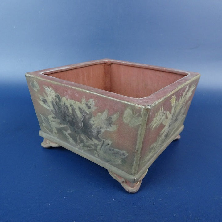 【中古】 盆栽鉢 青風 小鉢 長辺 約9.1cm 正方鉢 雲足 絵鉢 花 蝶 観賞用 現品 中古鉢 品名青風...