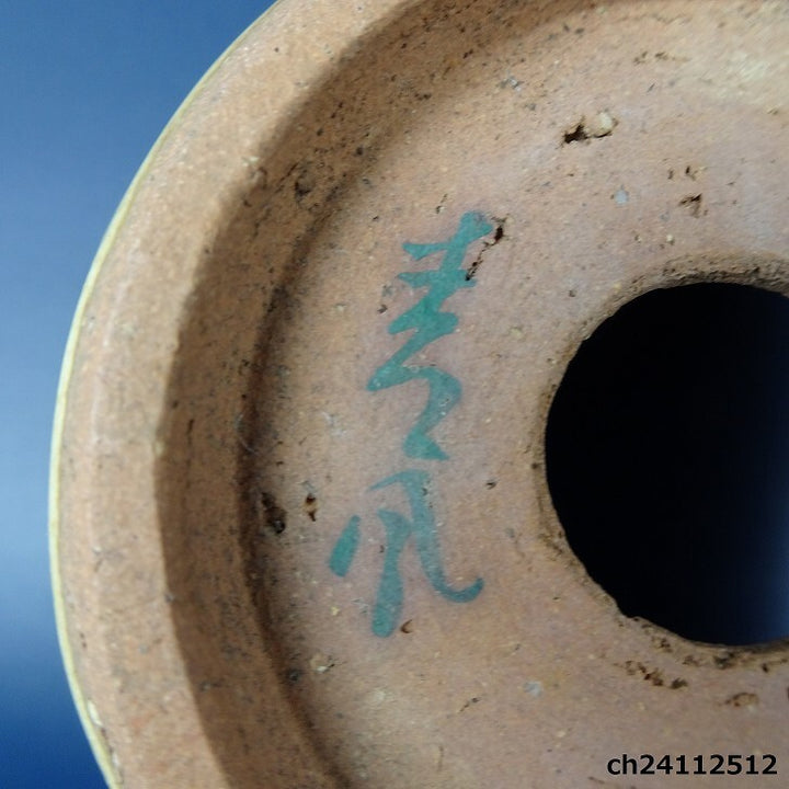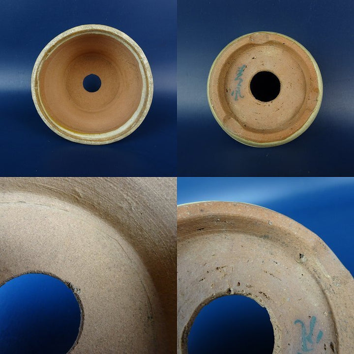中古 盆栽鉢 青風 小鉢 長辺 約9.6cm 丸鉢 釉薬 中古鉢 m1198405895