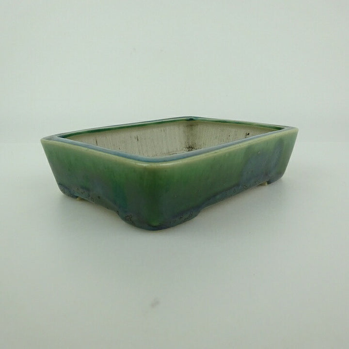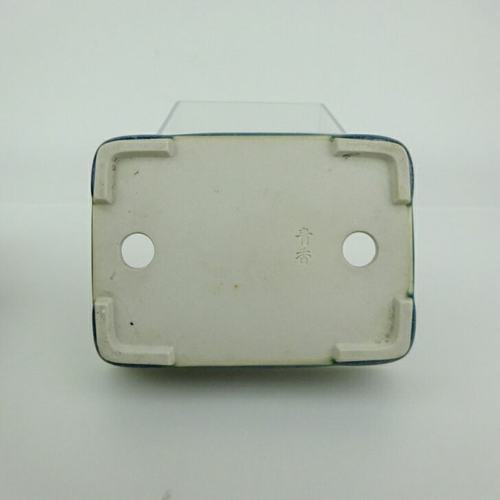 盆栽鉢 青香 小型 長辺 約 11.8cm 長方 鉢 釉薬 現品 中古鉢 品名青香...