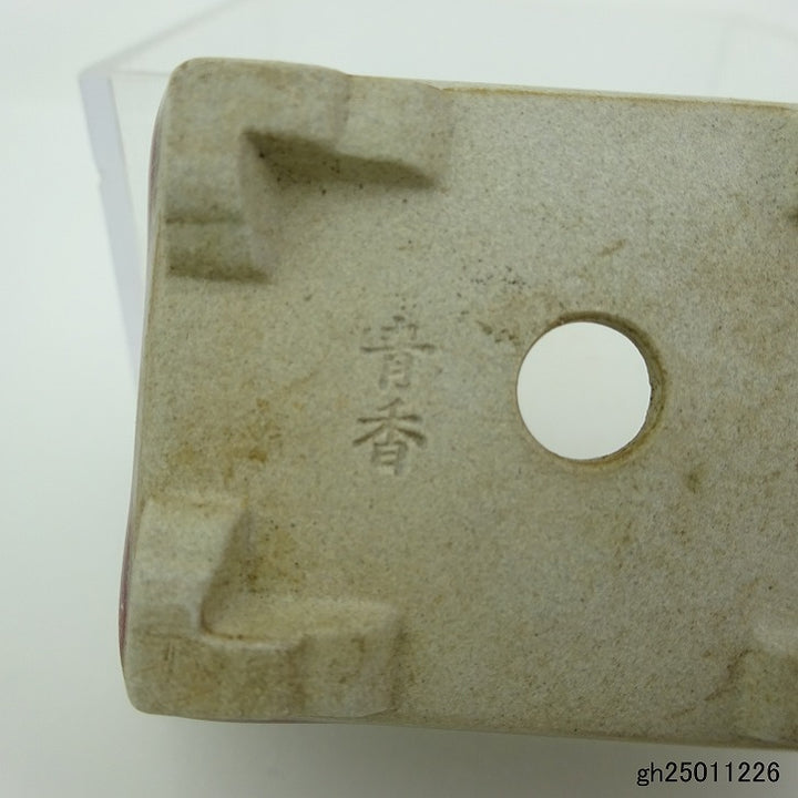 盆栽鉢 青香 小鉢 長辺 約 5.8cm 長方 鉢 縁付 釉薬 現品 中古鉢 品名青香...