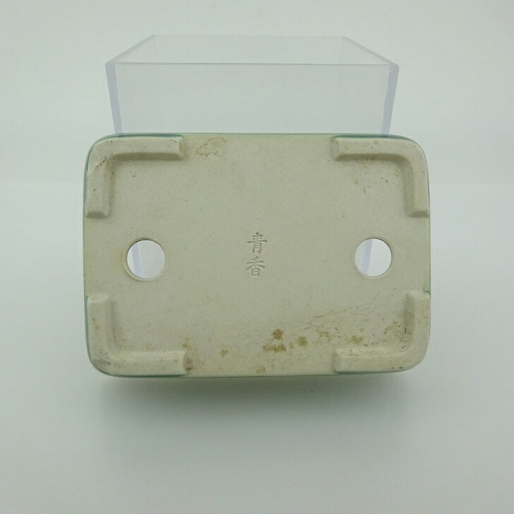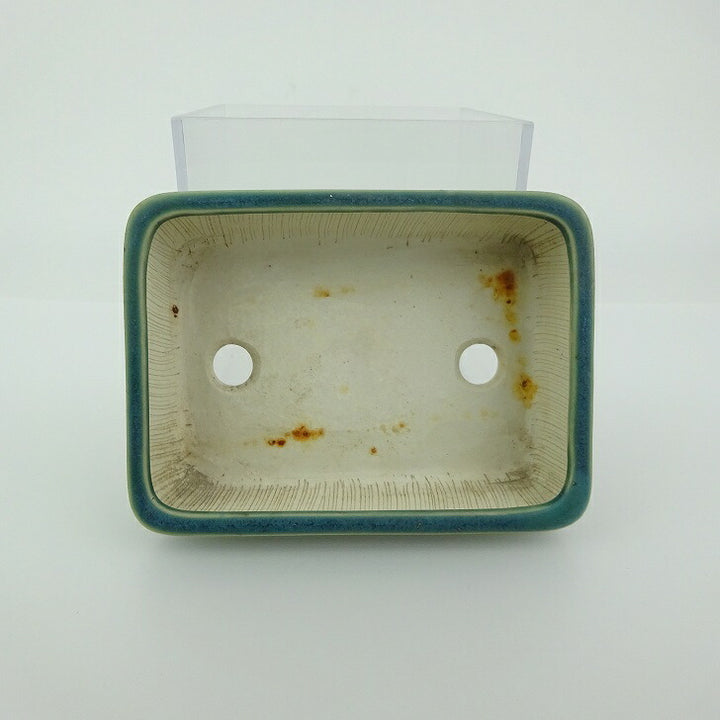 中古 盆栽鉢 青香 小鉢 長辺 約9.1cm 長方鉢 釉薬 中古鉢 w1201484628