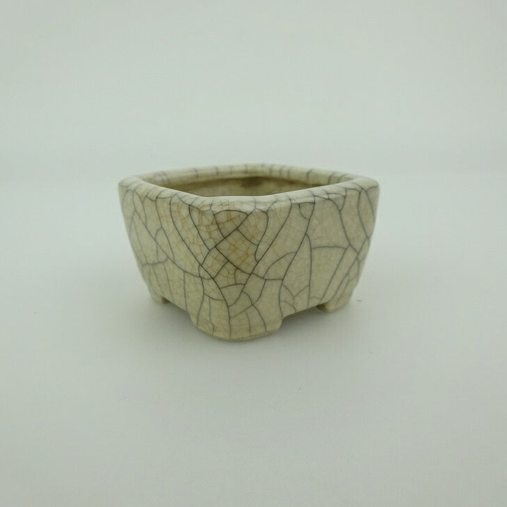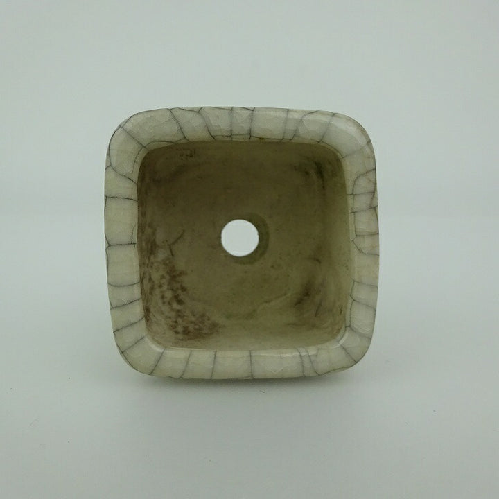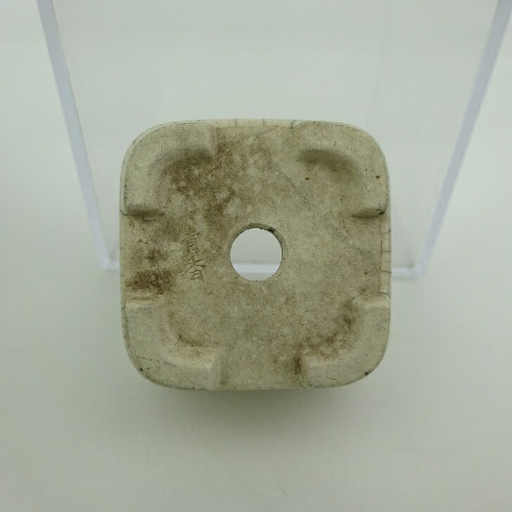 中古 盆栽鉢 青香 豆鉢 長辺 約4.6cm 正方鉢 貫入 釉薬 中古鉢 x1202693456
