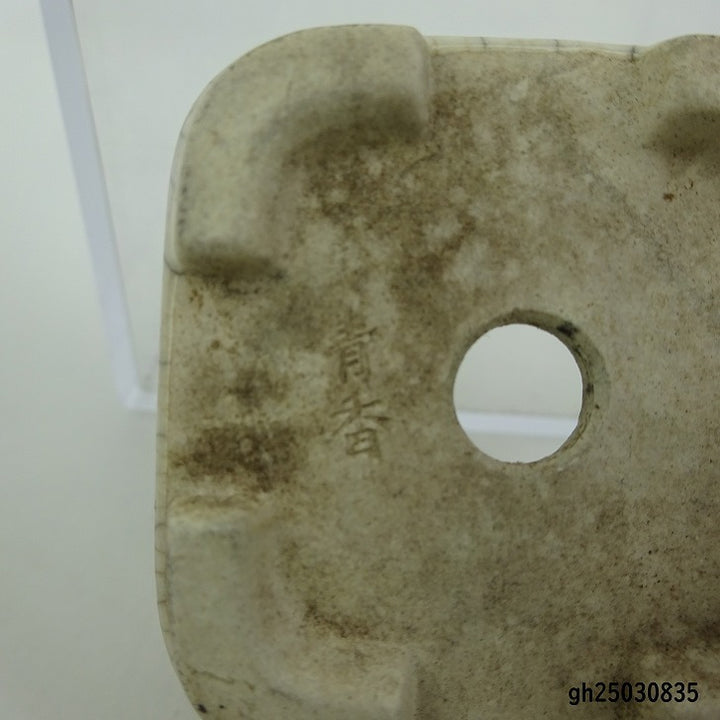 【中古】盆栽鉢 青香 豆鉢 長辺 約 4.6cm 正方 鉢 貫入 釉薬 現品 中古鉢 品名青香...