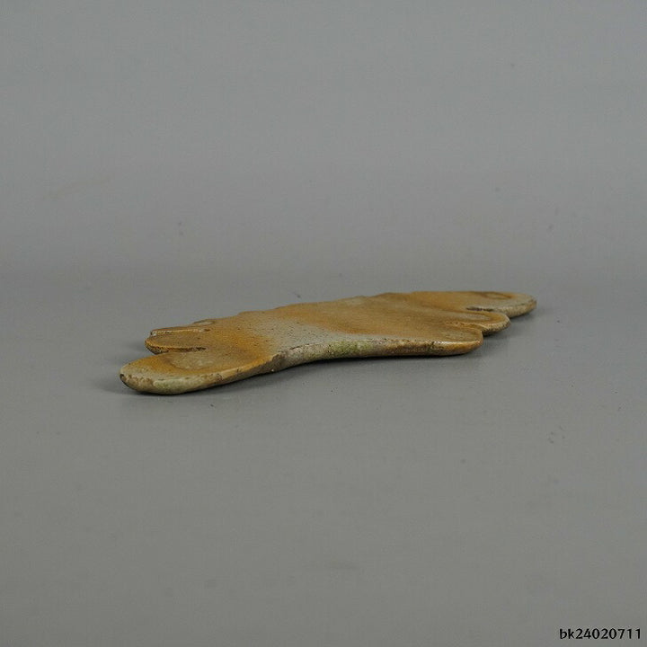 中古 陶板 花台 小型 長辺 約19cm 信楽焼 飾台 置物台 花飾 陶製 盆栽台 鉢皿 中古 l1198411819