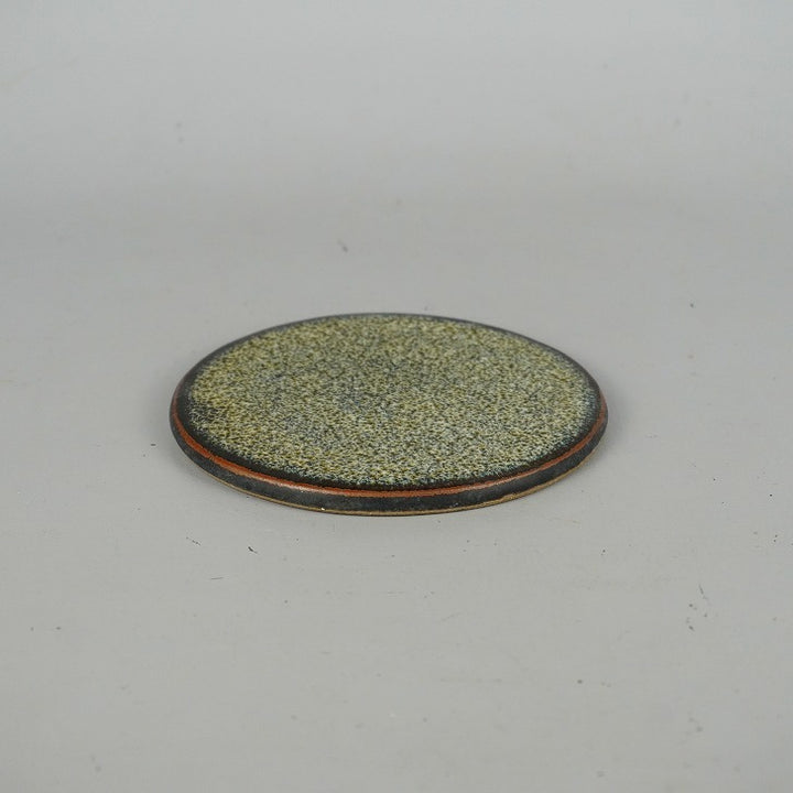 陶板 花台 小石原 長辺 約10.3cm 丸型 飾台 置物台 花飾 釉薬 陶製 盆栽台 敷物 現品 中古 品名小石原 陶板 (花台・飾卓)...