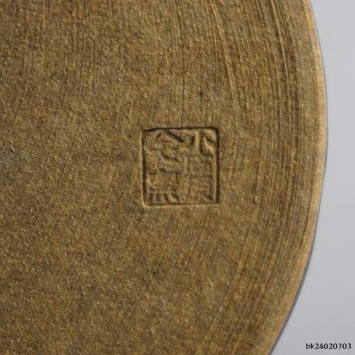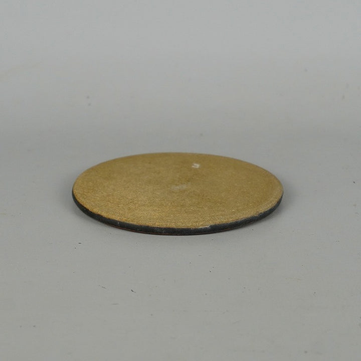 中古 陶板 花台 小石原 長辺 約10.3cm 丸型 飾台 置物台 花飾 釉薬 陶製 盆栽台 敷物 中古 p1198415534
