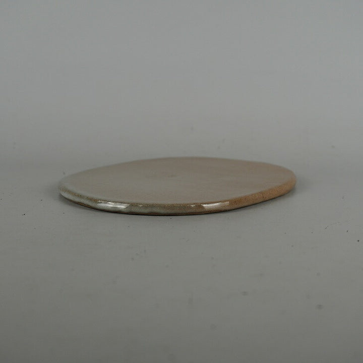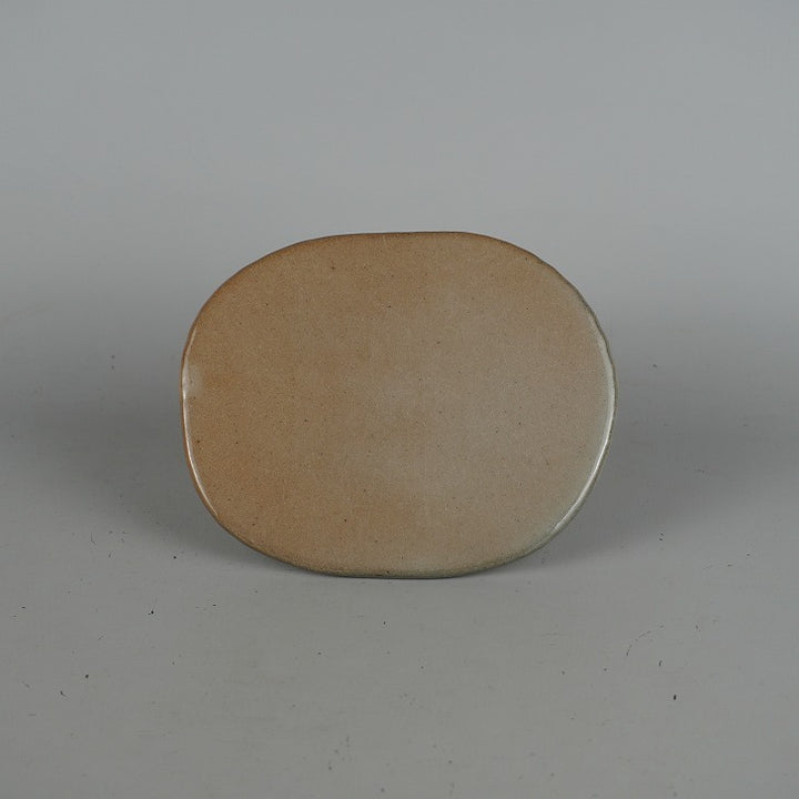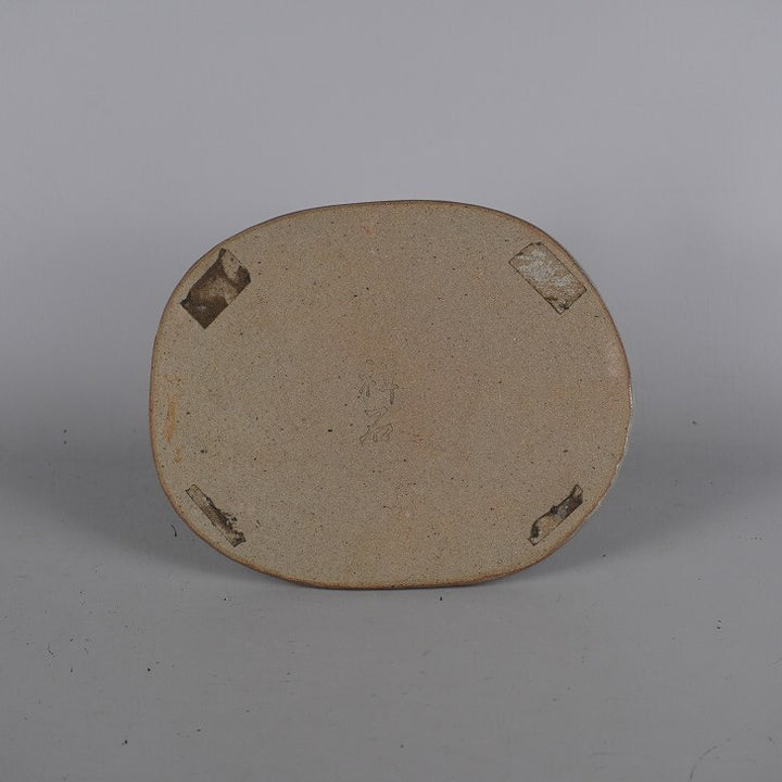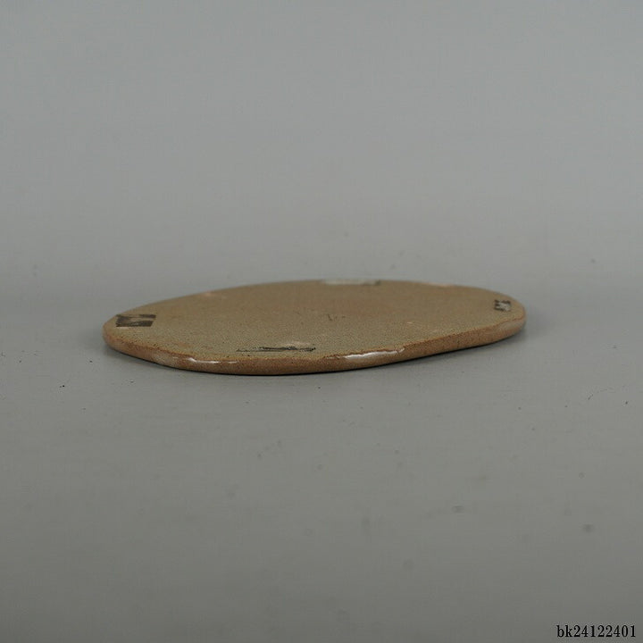 陶板 花台 祥石 小型 長辺 約15.8cm 楕円 飾台 置物台 花飾 釉薬 陶製 盆栽台 現品 中古 品名祥石 陶板 (花台・飾卓)...