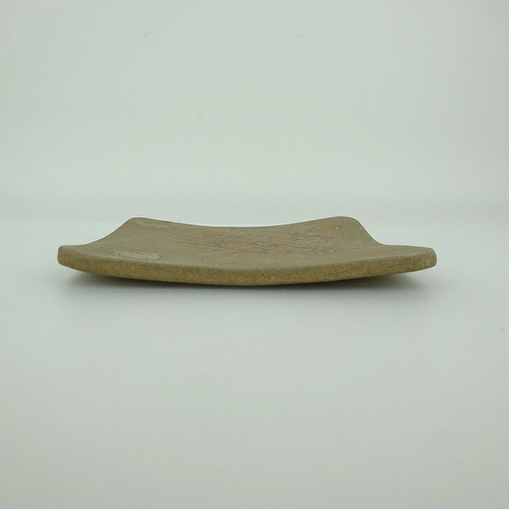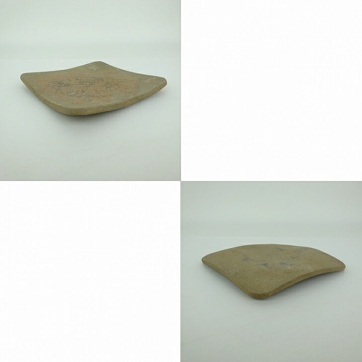 中古 陶板 花台 竹山 長辺 約10.8cm 正方 飾台 置物台 花飾 陶製 盆栽台 鉢皿 中古品 g1198416533