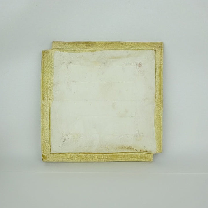 中古 陶板 花台 長辺 約23cm 正方 飾台 置物台 花飾 陶製 盆栽台 敷物 釉薬 中古品 d1203133333