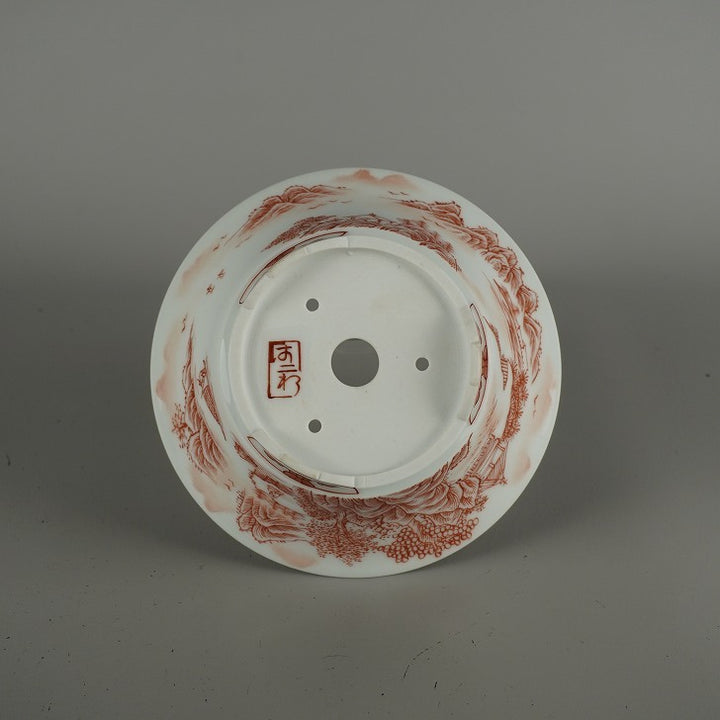 盆栽鉢 は二わ オリジナル鉢 小型 長辺 約 15.5cm 丸鉢 赤絵 山水図 花 模様 箱 布付 鑑賞 観賞用 現品 職人さんが丁寧に仕上げた、は二わのオリジナル商品です。...
