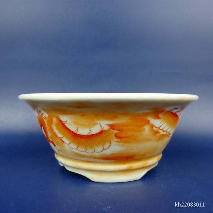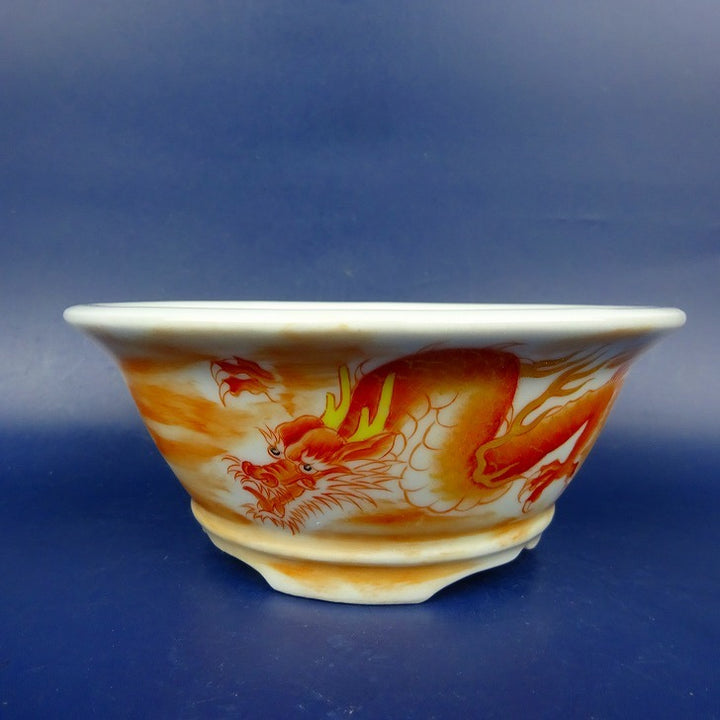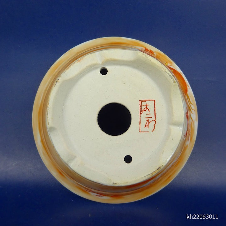 盆栽鉢 は二わ オリジナル鉢 小型 長辺 約12.4cm 丸鉢 赤絵 龍 ドラゴン 観賞用 新品 l1198415654