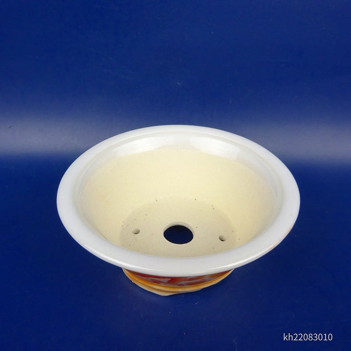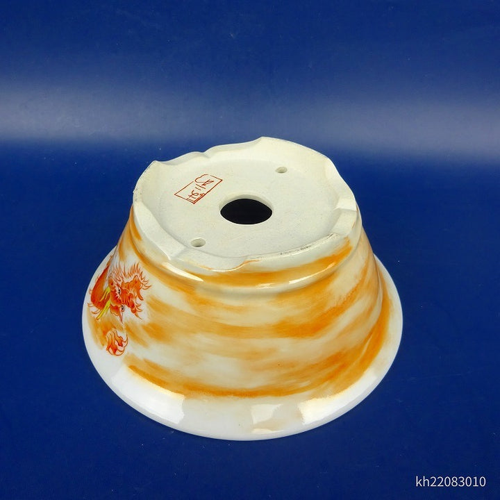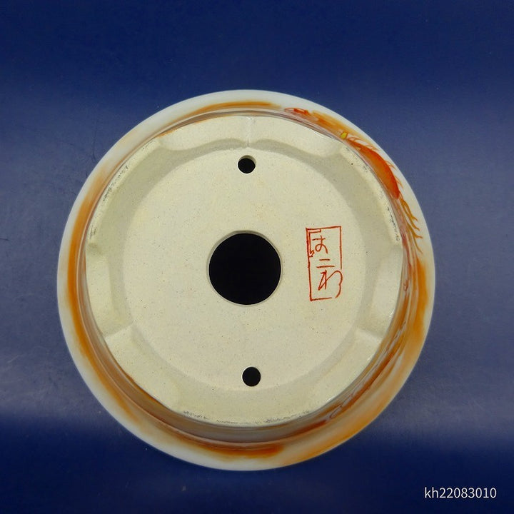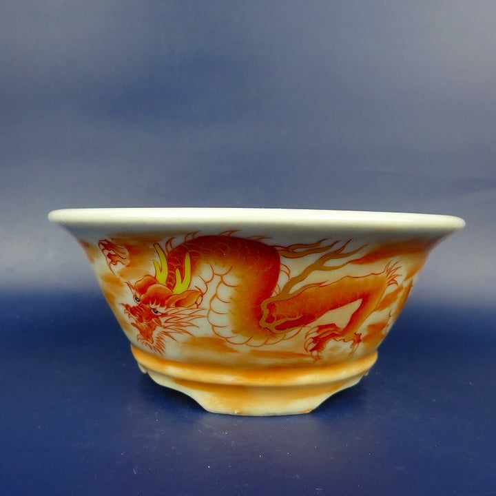 盆栽鉢 は二わ オリジナル鉢 小型 長辺 約12.5cm 丸鉢 赤絵 龍 ドラゴン 観賞用 新品 m1198406777
