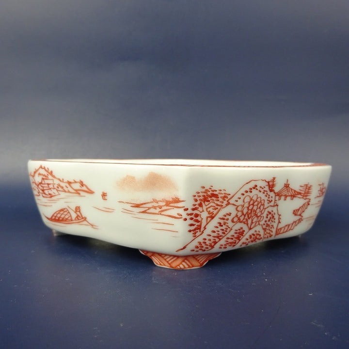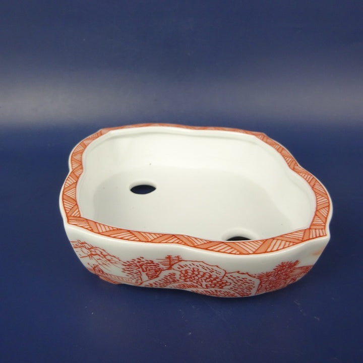 盆栽鉢 は二わ オリジナル鉢 小型 長辺 約13.5cm 剣木瓜鉢 赤絵 風景画 観賞用 現品 新品 は二わオリジナル鉢 職人さんが丁寧に仕上げた、は二わのオリジナル商品です。...