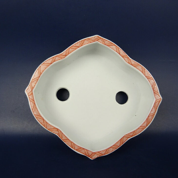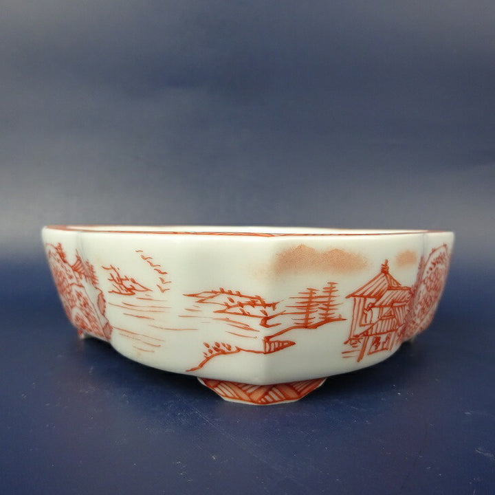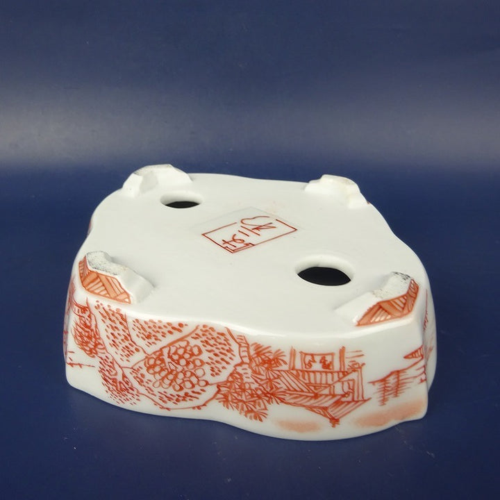 盆栽鉢 は二わ オリジナル鉢 小型 長辺 約13.5cm 剣木瓜鉢 赤絵 風景画 観賞用 新品 l1198408240