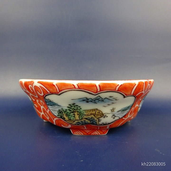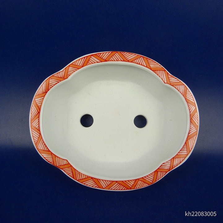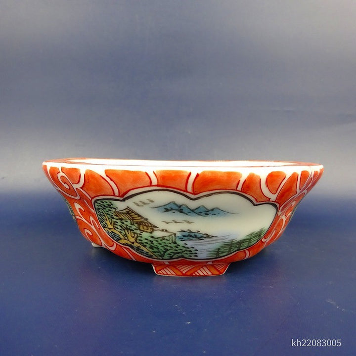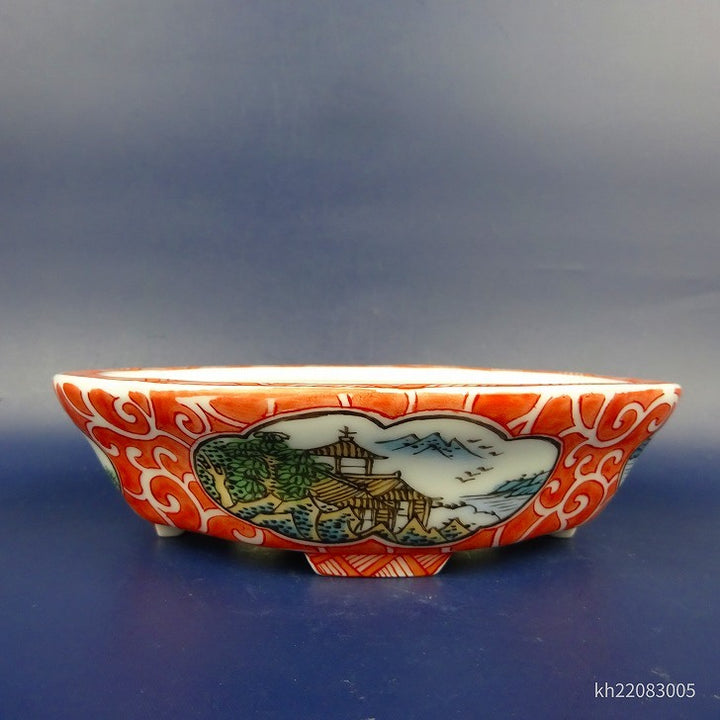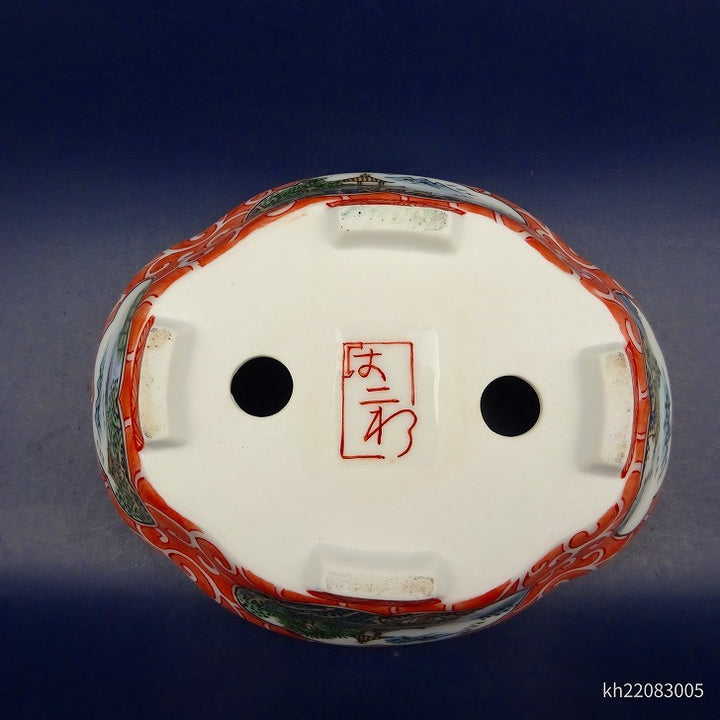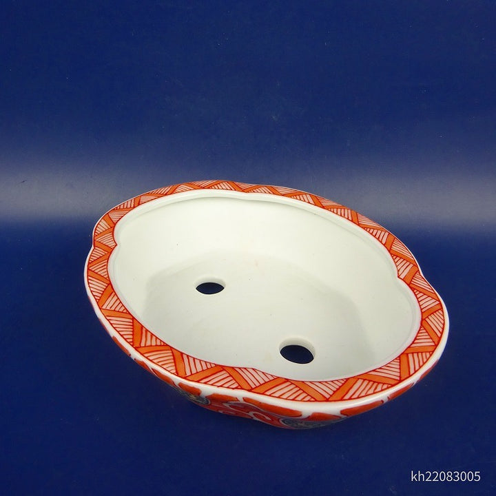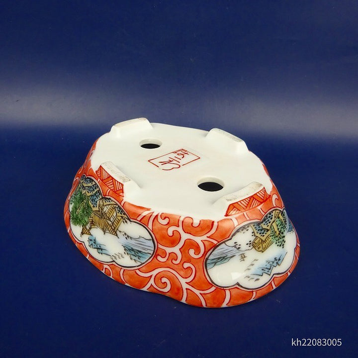 盆栽鉢 は二わ オリジナル鉢 小型 長辺 約15.2cm 木瓜鉢 色絵 風景画 山水図 観賞用 新品 c1198411364