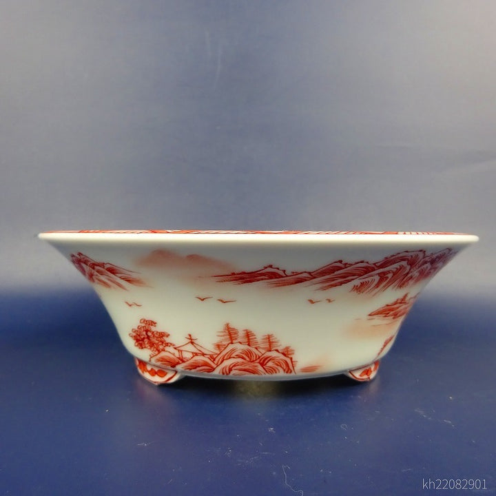 盆栽鉢 は二わ オリジナル鉢 小型 長辺 約15.5cm 丸鉢 赤絵 山水図 風景画 現品 新品 送料無料 は二わオリジナル鉢 職人さんが丁寧に仕上げた、は二わのオリジナル商品です。...