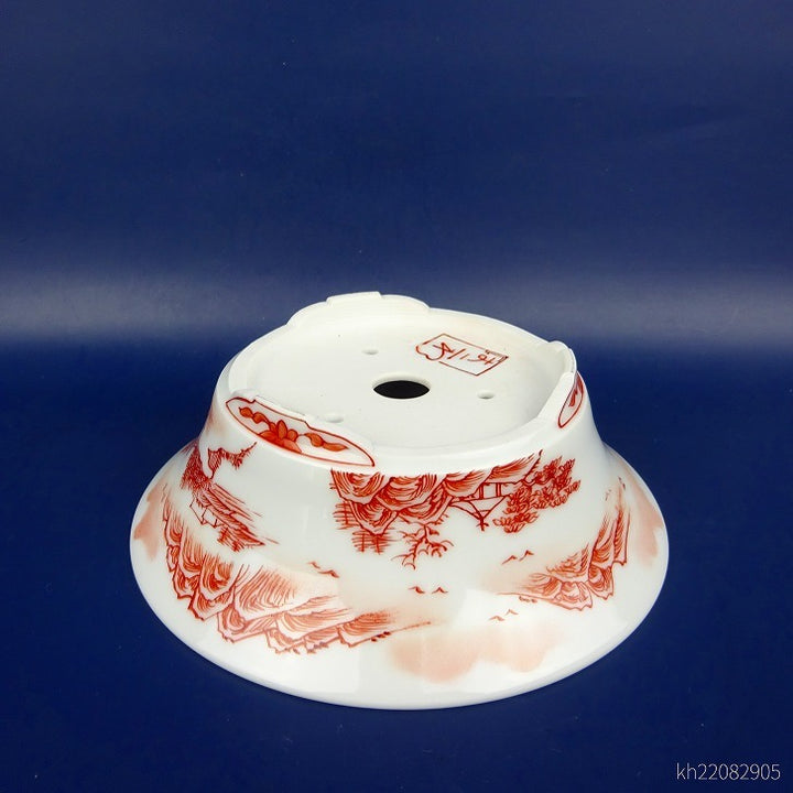 盆栽鉢 は二わ オリジナル鉢 小型 長辺 約15.5cm 丸鉢 赤絵 山水図 風景画 現品 新品 は二わオリジナル鉢 職人さんが丁寧に仕上げた、は二わのオリジナル商品です。...