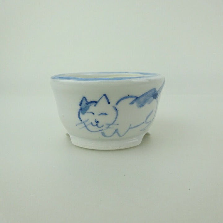 盆栽鉢 ゆうき祥石 小鉢 長辺 約 5.9cm 丸鉢 絵鉢 猫 ネコ ねこ 釉薬 鑑賞用 観賞用 新品 p1202247594