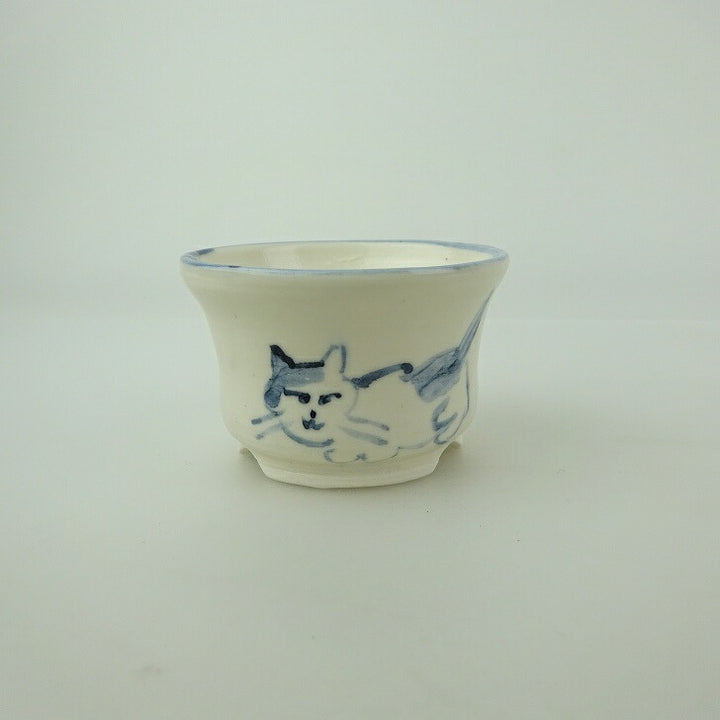 盆栽鉢 ゆうき祥石 小鉢 長辺 約 6cm 丸鉢 絵鉢 猫 ネコ ねこ 釉薬 鑑賞用 観賞用 新品 f1200288572