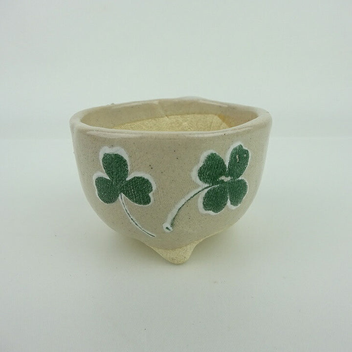 盆栽鉢 ゆうき祥石 小鉢 長辺 約6.8cm 丸鉢 プリント クローバー 釉薬 観賞用 現品 新品 品名ゆうき祥石...