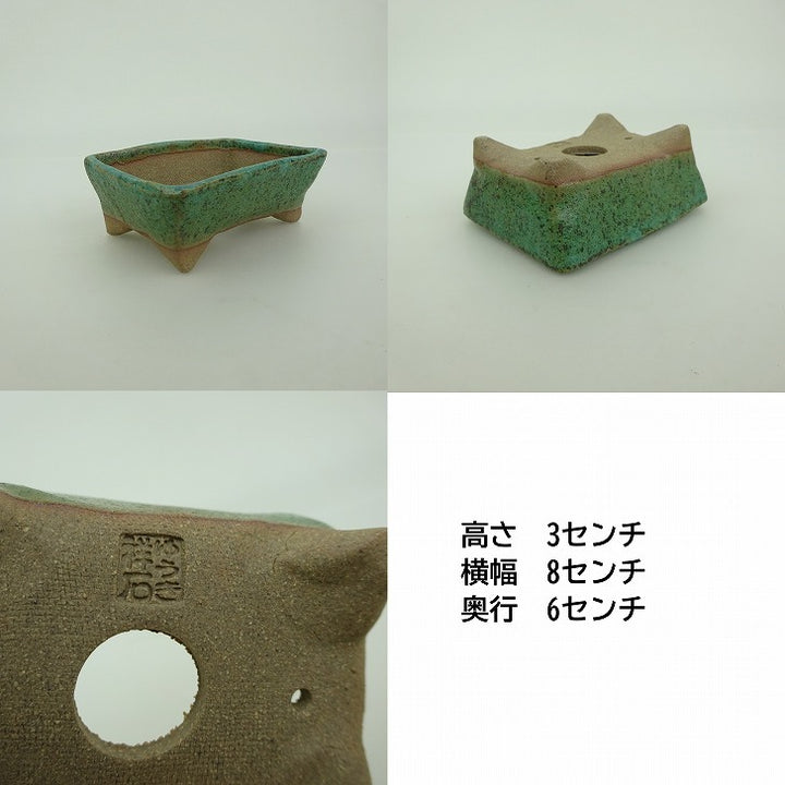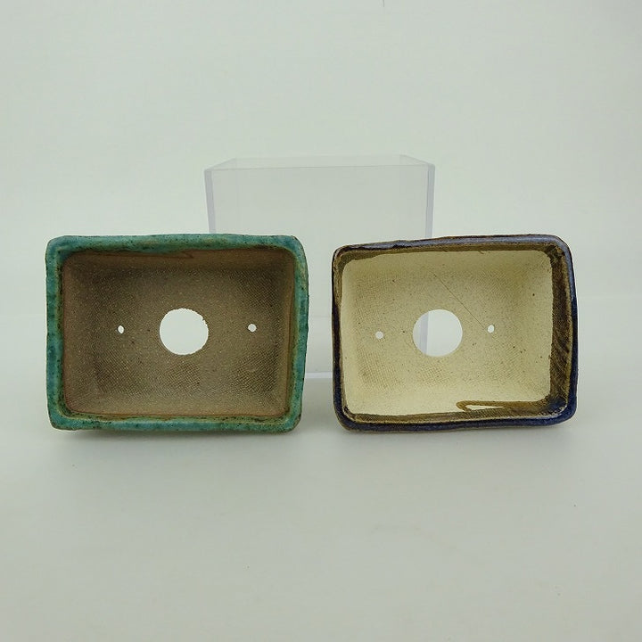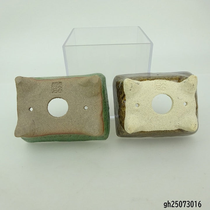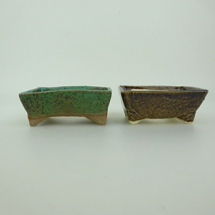 盆栽鉢 ゆうき祥石 2点セット 小鉢 長辺 約8cm 長方鉢 茶 緑 釉薬 新品 f1202690643