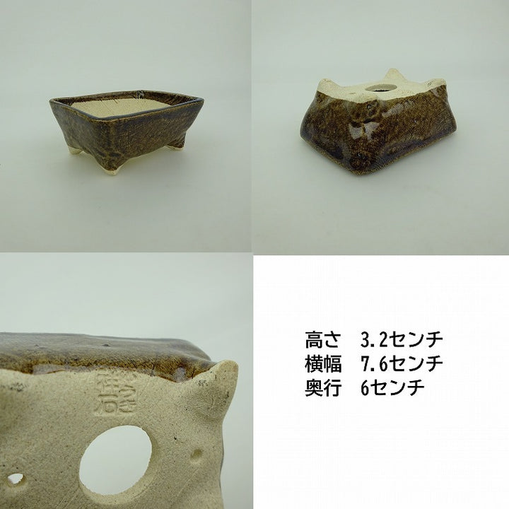 盆栽鉢 ゆうき祥石 2 点セット 小鉢 長辺 約 8cm 長方 鉢 茶 緑 釉薬 現品 新品 品名ゆうき祥石 2点セット...