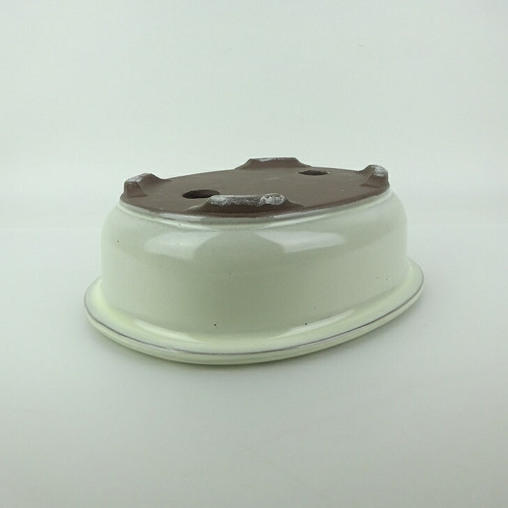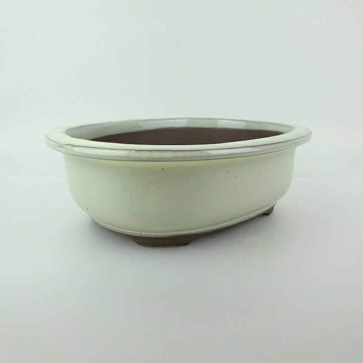 盆栽鉢 万古焼 萬古 中型 長辺 約21cm 楕円鉢 縁付 釉薬 新品 数量物 k1198405536