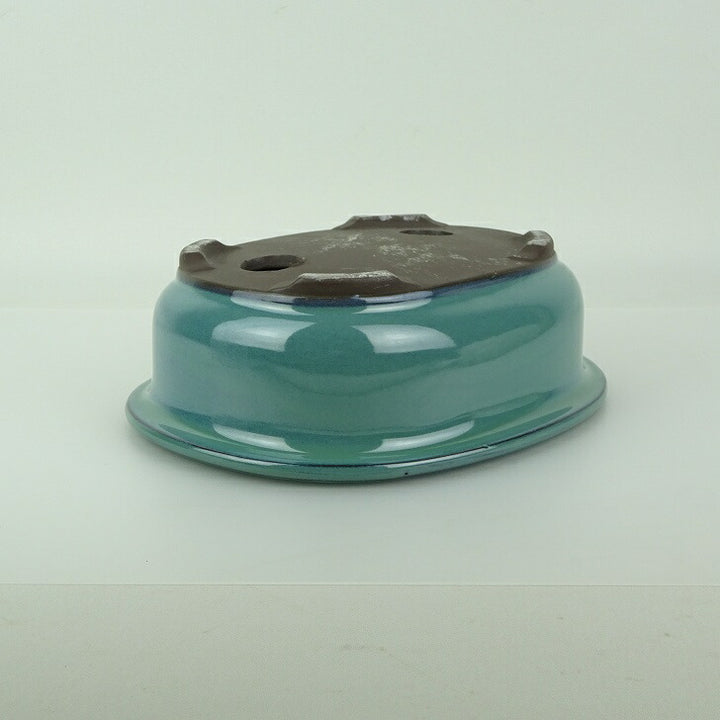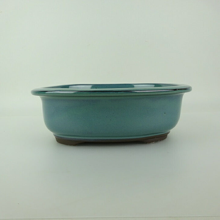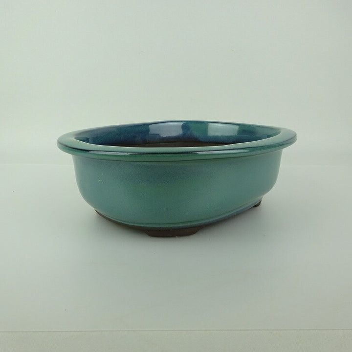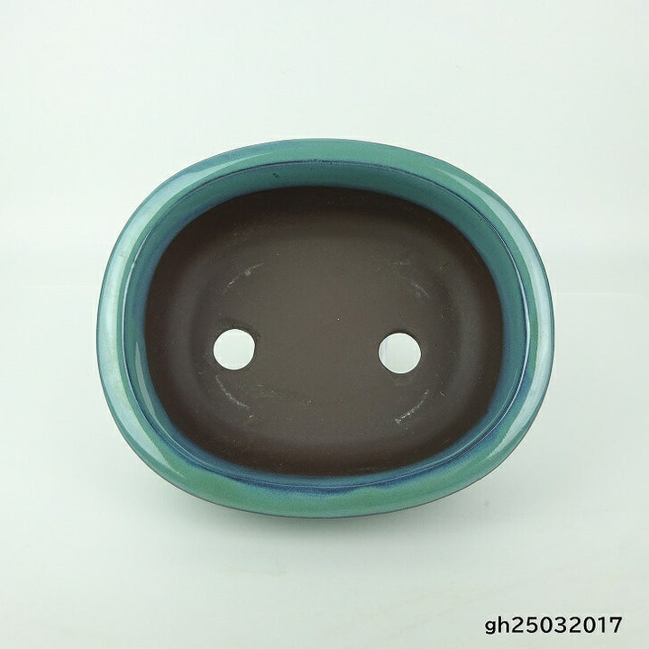 盆栽鉢 万古焼 萬古 中型 長辺 約21cm 楕円鉢 縁付 釉薬 新品 数量物 p1198418822
