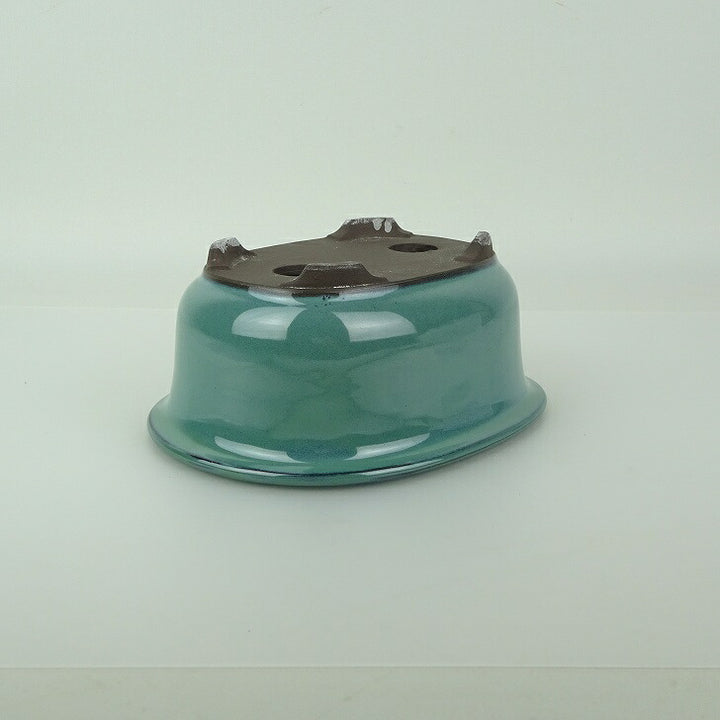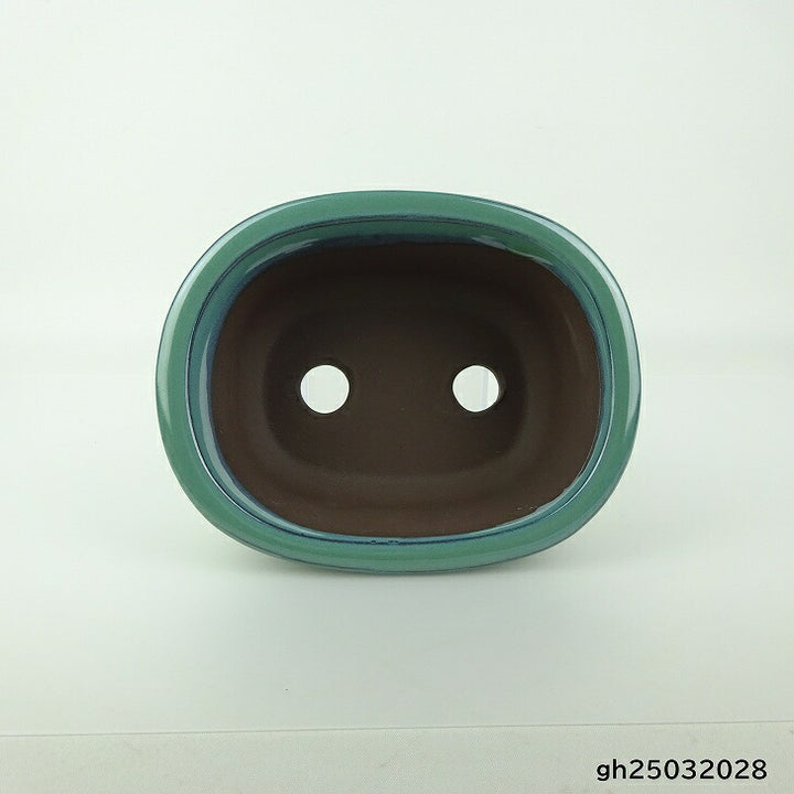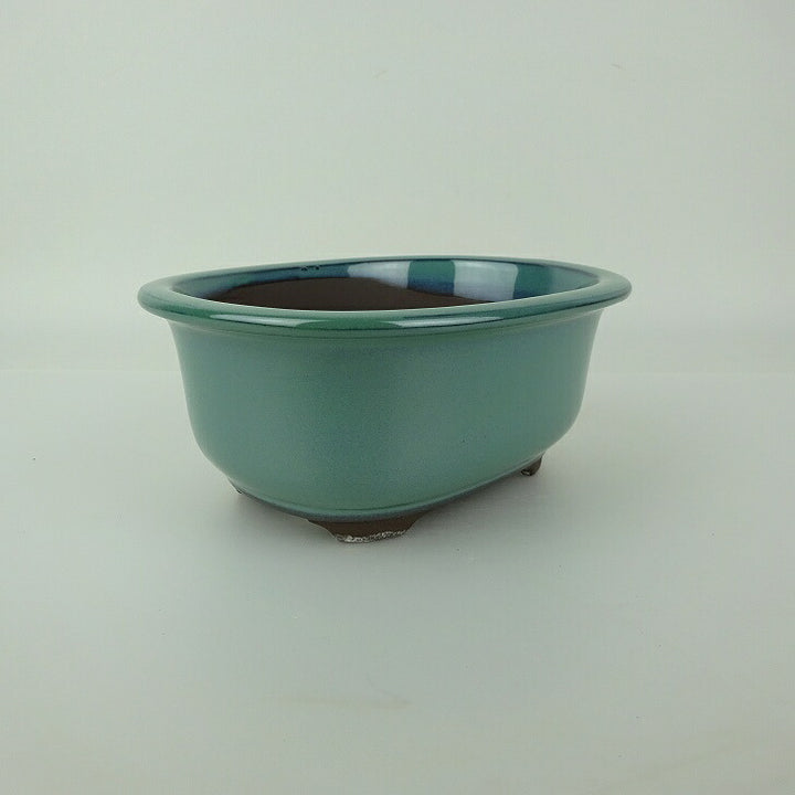 盆栽鉢 万古焼 萬古 小型 長辺 約16cm 楕円鉢 縁付 釉薬 新品 数量物 v1198434445