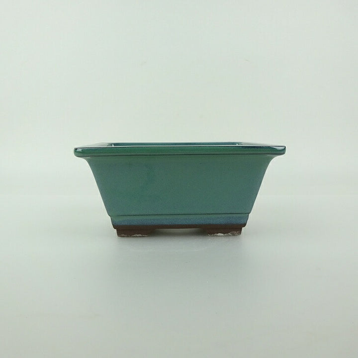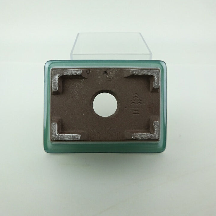 盆栽鉢 万古焼 萬古 森三 小型 長辺 約11.7cm 長方鉢 縁付 下帯 釉薬 新品 数量物 j1198413524