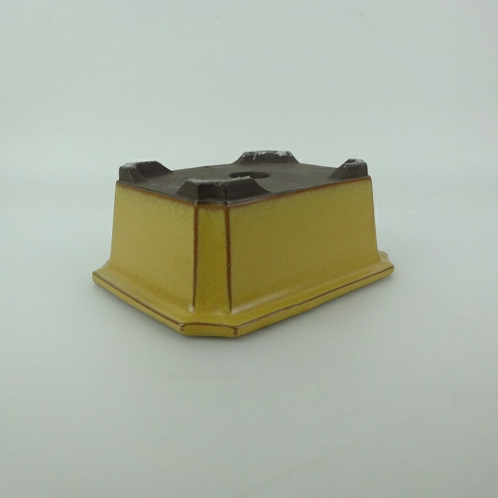 盆栽鉢 万古焼 萬古 森三 小型 長辺 約13.8cm 長方鉢 隅入 釉薬 新品 数量物 d1198423977