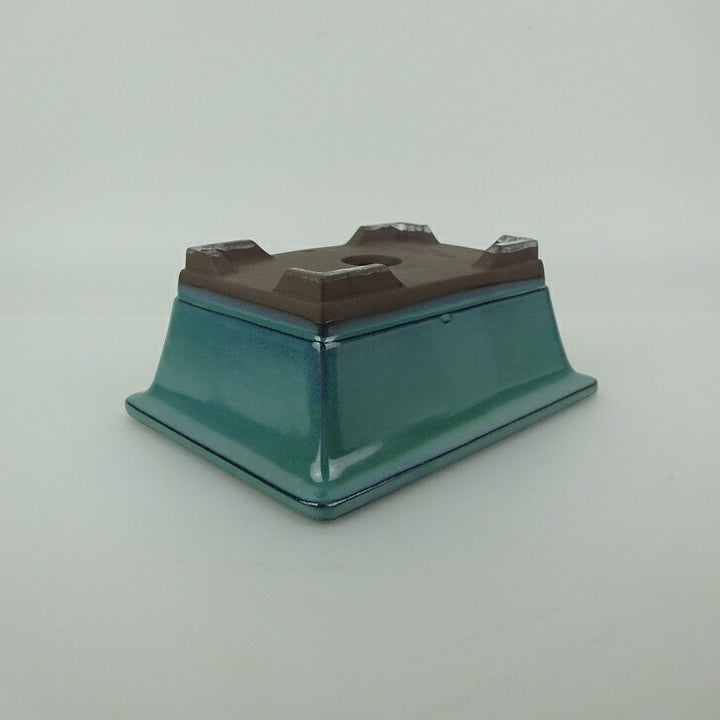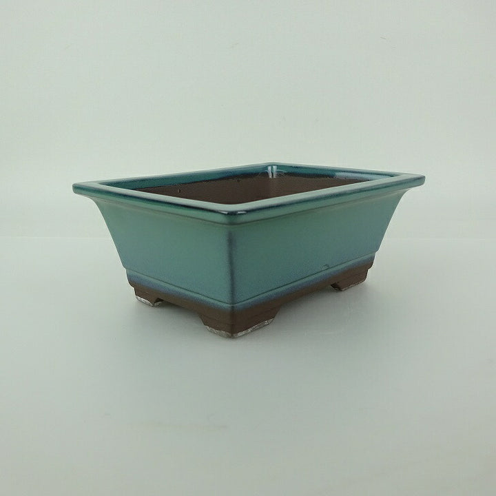盆栽鉢 万古焼 萬古 森三 小型 長辺 約14cm 長方鉢 縁付 下帯 釉薬 新品 数量物 u1198430312