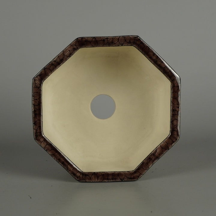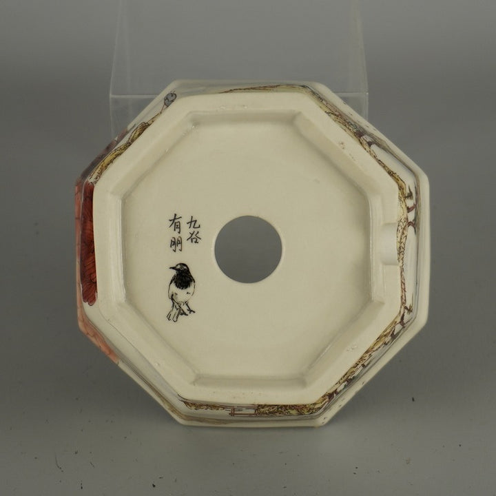 盆栽鉢 九谷 有朋 小型 長辺 約 13cm 八角鉢 色絵 山水図 花 共箱 共布 鑑賞 観賞用 現品 新品 品名九谷有朋 (共箱・共布)...