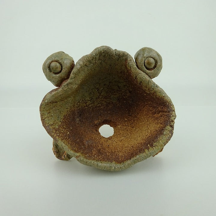 盆栽鉢 信楽焼 小型 長辺 約10.5cm かえる形 信楽 鉢 手作り 蛙 カエル 観賞用 現品 新品 品名信楽焼...