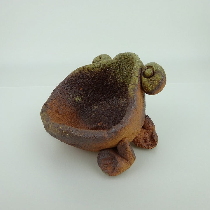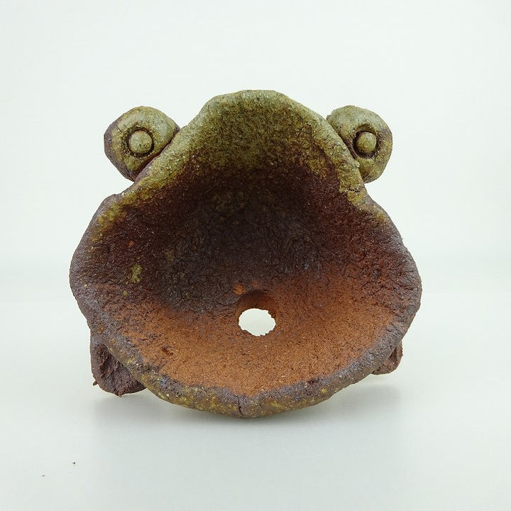 盆栽鉢 信楽 信楽焼 小型 長辺 約10.5cm かえる形 鉢 手作り 蛙 カエル 観賞用 新品 c1198409172